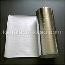 La lámina de espuma PE se introduce a la máquina de laminado de película y se diseña para hacer láminas de la espuma de politetileno laminada en película metalizada de polímero o película de polietileno a través de un rodillo laminador de alta temperatura por medio de calentadores eléctricos y de aceite térmico ubicados dentro del mismo para obtener aislamiento acústico y térmico, así como resistencia al agua y humedad.